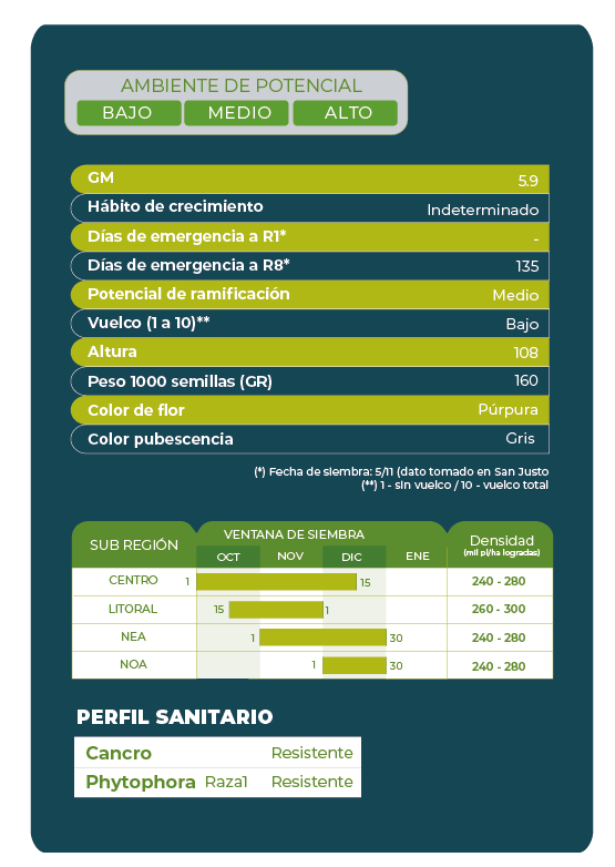 Variedad con gran adaptabilidad a zonas centro y norte del país, con alto potencial de rendimiento y tecnología STS.