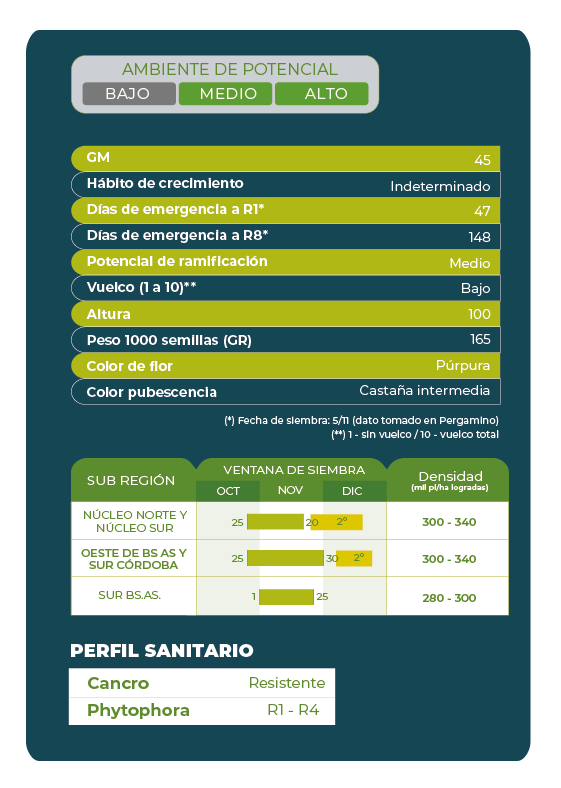Horus Semillas BIO 4.52 BIO 4.52 Variedad de ciclo 4 largo con tecnología RG. Alto potencial de rinde y amplia adaptación a diferentes ambientes productivos. Gran plasticidad ante diferentes fechas de siembra. Descargá aquí los catálogos de Horus : Producto completo Quiero que me contacte un asesor Enviar